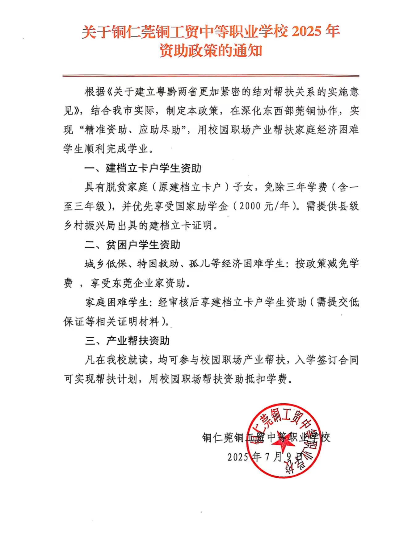 根据《关于建立粤黔两省更加紧密的结对帮扶关系的实施意见》,结合我市实际,制定本政策,在深化东西部莞铜协作,实现“精准资助、应助尽助”,用校园职场产业帮扶家庭经济困难学生顺利完成学业。